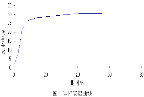 取出已調(diào)濕好的約1g纖維試樣在105℃烘箱內(nèi)烘燥1h,烘至試樣的質(zhì)量不變時(shí),稱取試樣的初始重量。然后將試樣放置在玻璃皿中,完量保持松散狀態(tài)下進(jìn)入吸濕過程,每隔一段時(shí)間記錄1次試樣重量,當(dāng)前后兩次稱重之差和后一次重量之比小于0.05%時(shí),視為纖維在標(biāo)準(zhǔn)狀態(tài)下達(dá)到吸濕平衡。實(shí)驗(yàn)采納10組纖維試樣,每組試樣纖維質(zhì)量約為1g。