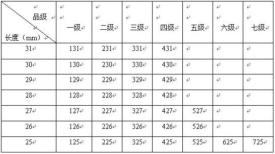 品級(jí)分級(jí)和長(zhǎng)度分級(jí)組合,可將棉花分為33個(gè)等級(jí),構(gòu)成棉花的等級(jí)序列。如國(guó)標(biāo)規(guī)定的標(biāo)準(zhǔn)品是328,即表示品級(jí)為3級(jí),長(zhǎng)度為28.0-28.9毫米的棉花。