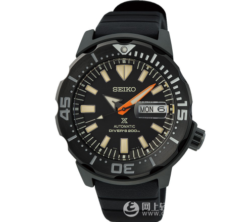 精工Prospex黑色系列怪獸腕表腕表保留了第四代怪獸腕表的所有經(jīng)典設(shè)計(jì)元素,包括帶有防護(hù)裝置的表耳模塊,以及標(biāo)注超大刻度的凹槽表圈。表殼經(jīng)過(guò)黑色涂層處理,配備旋入式表冠和Hardlex鏡面,經(jīng)過(guò)黑色涂層處理,直徑42.4毫米,厚度13.4毫米,具有200米防水性能,佩戴腕間存在感十足。