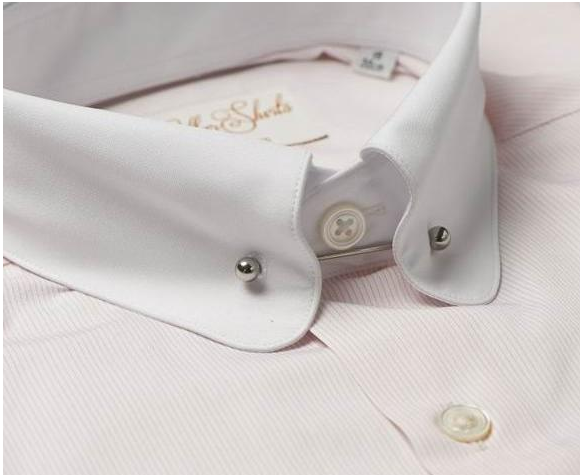 領(lǐng)針領(lǐng)正式的襯衫之一,適合佩戴細(xì)領(lǐng)帶,領(lǐng)口由領(lǐng)針固定后壓在領(lǐng)帶下,顯得特別嚴(yán)謹(jǐn),但因?yàn)轭I(lǐng)針的款式多變,又略顯風(fēng)騷。