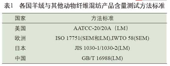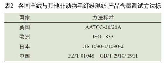 羊絨和其他動(dòng)物纖維混紡化纖織物時(shí)纖維含量測(cè)試方法標(biāo)準(zhǔn)見表1。