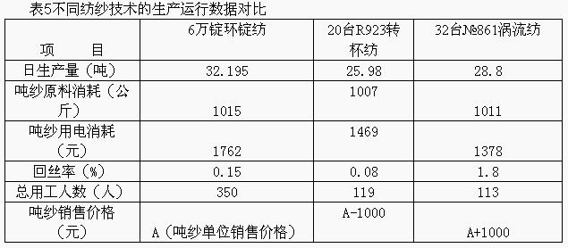 我們以生產(chǎn)純粘膠30S產(chǎn)品針織物用紗為例,新型紡紗比環(huán)錠紡紗在用人上是占絕對優(yōu)勢。人員工資按2.5萬元/年,新型紡紗比環(huán)錠紡紗每年僅工資一項就可以多創(chuàng)利潤577.5萬元。