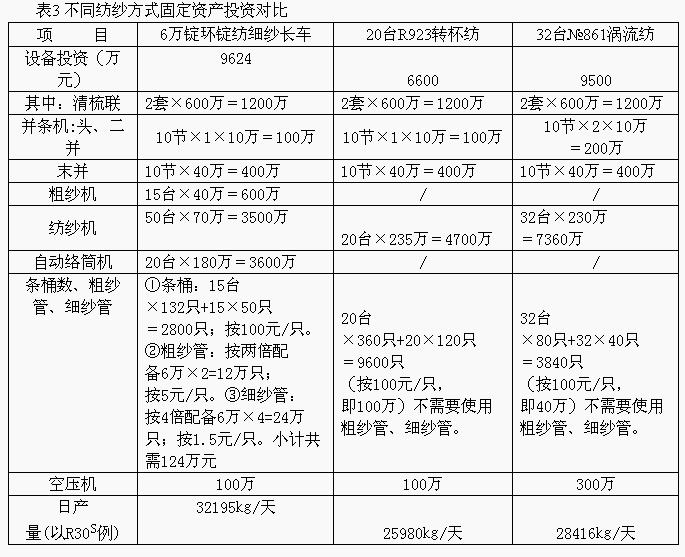 在產(chǎn)品定位相同的前提下,以自動化程度高、降低員工勞動強度、減少萬錠用工和提高生產(chǎn)效率為目的,進行固定資產(chǎn)投資對比分析見表3: