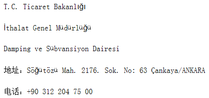 土耳其境外企業(yè)、協(xié)會(huì)組織的聯(lián)絡(luò)郵箱:ithebys@ticaret.gov.tr