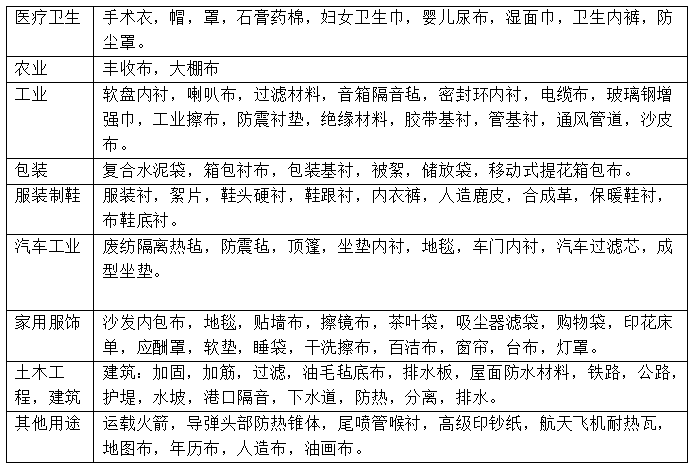 工業(yè)方面:工業(yè)水泥包裝袋,還有一些工業(yè)材料(過濾、絕緣材料)。