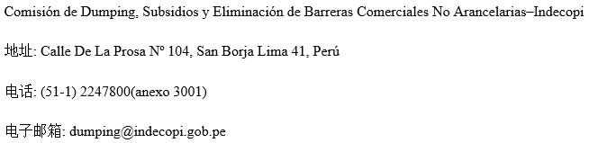 利益相關方可于本公告發(fā)布后的30個工作日內(nèi)以登陸網(wǎng)站(網(wǎng)址:https://www.indecopi.gob.pe/en/mesadepartes)或通信的方式(地址見下方)進行應訴登記、提交證據(jù)材料: