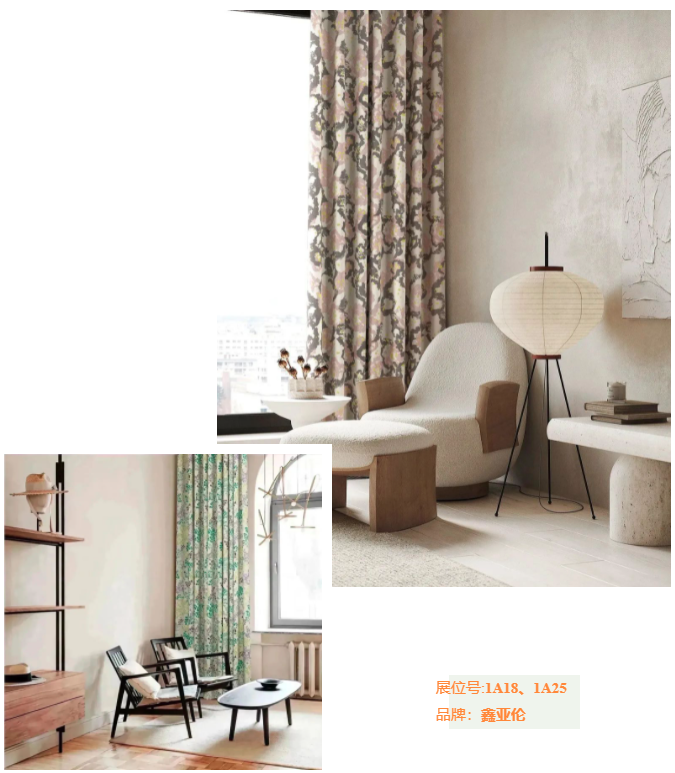 本次展會,如意屋將帶來窗簾、窗飾、墻布、床品、毛浴巾、地毯、真絲睡衣……全系列軟裝產(chǎn)品,此外,還將帶來其特有的遮光、阻燃、三防、抗菌、除甲醛、遮影窗紗等專利功能產(chǎn)品,用好產(chǎn)品為消費者打造更好的氛圍家。