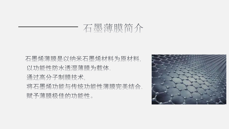 1.石墨烯內(nèi)暖纖維石墨烯內(nèi)暖纖維是由生物質(zhì)石墨烯與各類(lèi)纖維復(fù)合而成的一種智能多功能纖維新材料,具備超越國(guó)際先進(jìn)水平的低溫遠(yuǎn)紅外功能,集抗菌抑菌、抗紫外線、防靜電等作用于一身,被譽(yù)為“劃時(shí)代的革命性纖維”。
