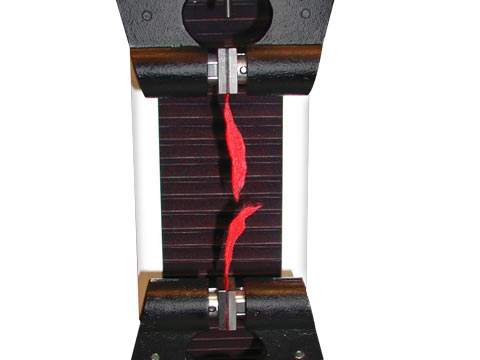 針織物物的拉伸斷裂性能便是指標有緞類強力和斷裂伸長率。檢測的基本原理是用適宜的機械方法對試樣給和逐步增加的拉力,直至在規(guī)定的時間限度內發(fā)生斷裂,由儀器記錄斷裂強力和斷裂伸長率。這種方法對彈性比較大的針織物物和花邊并不適用。