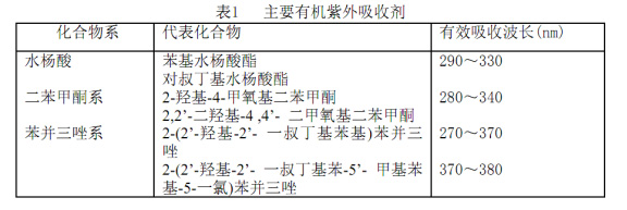 防紫外線(xiàn)屏蔽劑的研究現(xiàn)狀根據(jù)防護(hù)機(jī)理的不同,使用的紫外線(xiàn)屏蔽劑類(lèi)型可分為兩種。